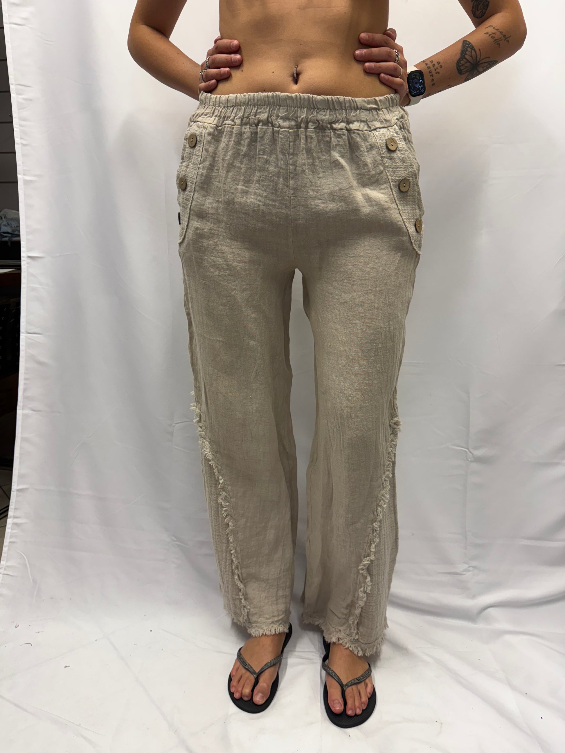 Pantalone Chiara 100% lino bottone